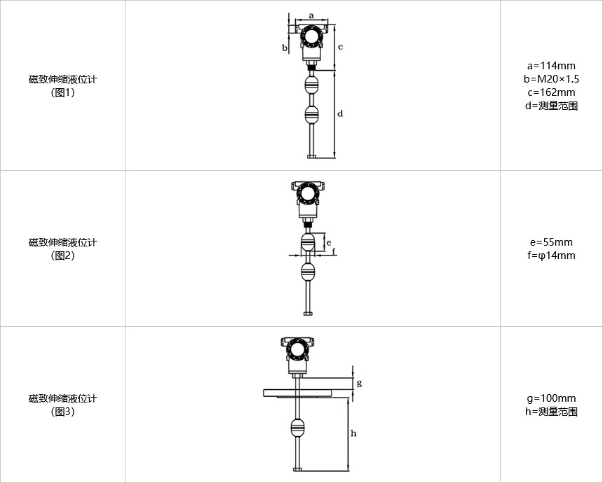磁致伸縮液位計工作時,變送器的觸發(fā)電路部分激勵出脈沖電流,電流沿磁致伸縮線傳播產(chǎn)生脈沖電流磁場。在磁致伸縮液位計的傳感器測桿外配有磁性浮子,浮子沿測桿隨液位的變化而發(fā)生位移。在浮子內(nèi)部裝有磁環(huán),當脈沖電流磁場與浮子磁環(huán)磁場相遇時,浮子周圍的磁場發(fā)生改變從而使磁致伸縮線在浮子停留的位置產(chǎn)生一個扭轉(zhuǎn)波脈沖,這個脈沖以固定的速度沿磁致伸縮線傳回至變送器由檢測電路檢出,通過中央處理器計算脈沖電流與扭轉(zhuǎn)波脈沖的時間差可以準確地確定出浮子所在的位置,即液面的位置。變送器模電轉(zhuǎn)換電路輸出4-20mA或RS485 MODBUS信號,從而實現(xiàn)液位信號遠傳的目的。